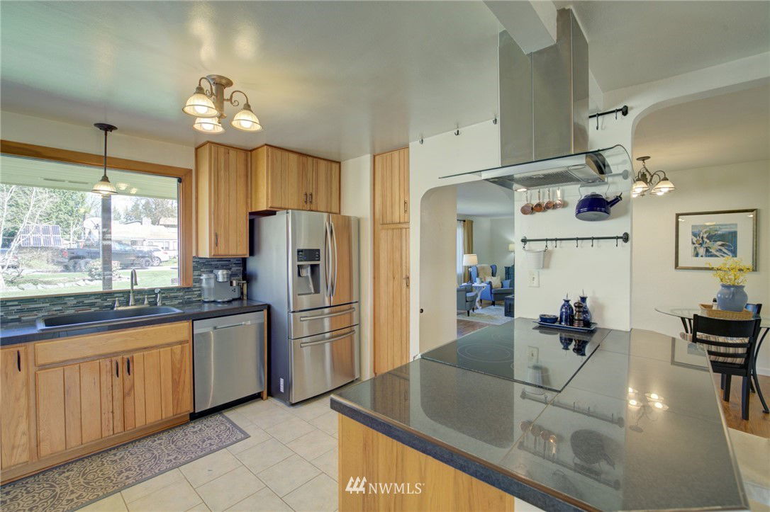 Remodeled Mid-Century rambler with light & bright open living. Primary bedroom with ensuite 3/4 bath. Large living spaces & updates throughout. Hard floor surfaces including hardwood floors. Ductless heat & air conditioning. Big, level lot with expansive lawn, garden space & fully fenced is perfect for garden, pets or play. Covered patio is great spot for BBQ, dining, & entertaining. Excellent outside living. Huge front driveway for RV & boat parking. Convenient location close to shopping, hospital & freeway access. All appliances included. Pre-inspected.