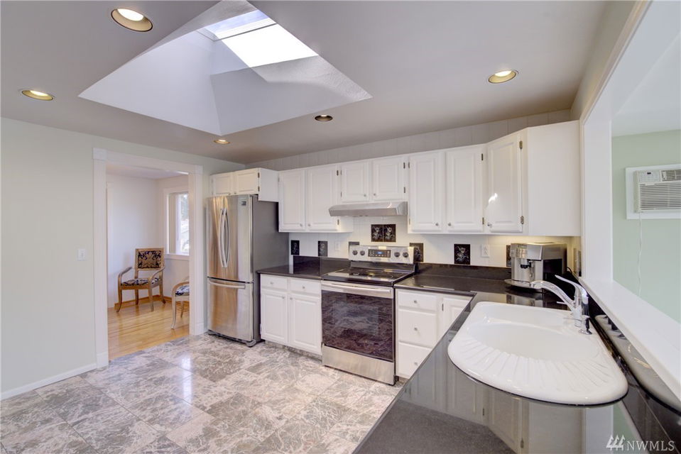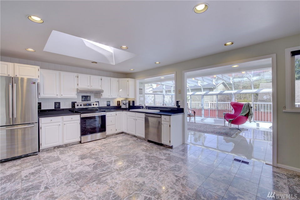 Wonderful floor plan in the desirable Kingsgate 3&4 neighborhood of Kirkland. Remodeled and updated throughout. Double wide entry. Beautiful & inviting Sun room. Light and bright remodeled kitchen. New Stainless appliances & gleaming hardwood floors. Skylights & metal roof. Gorgeous master bath with jacuzzi tub. Large deck & big fenced back yard. 3 acre Community Park & Pool. Walk to Lake Washington Schools. Just a few blocks to Evergreen Hospital, Library, shopping, 405 & Totem Lake Village.