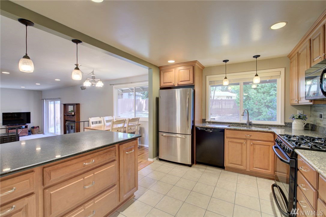 Wonderfully updated & remodeled rambler located in the popular Kingsgate area of Kirkland. Remodeled kitchen with quartz countertops, gas range & open to main living area. Gleaming hardwood floors. Updated lighting & six panel doors. Spacious master bedroom with private 3/4 bath. Welcoming entry porch & new rear deck. Excellent access to Hwy 405, Evergreen Medical, Totem Lake Village, Kingsgate Library & Lake Washington Schools. High Woodlands Community Park, pool & tennis courts. Move-in ready.