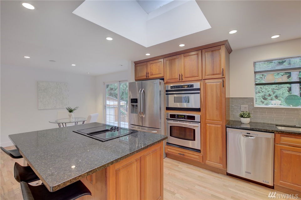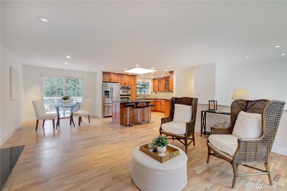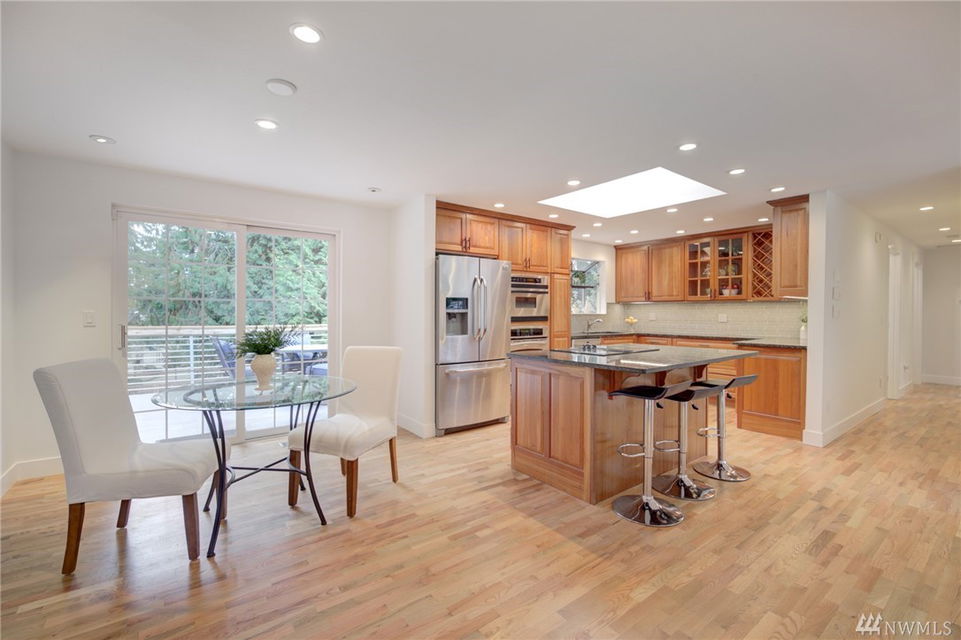 Beautifully remodeled in the popular Kingsgate 3&4 community of Kirkland. Open concept main living with gorgeous hardwood floors. All new doors & millwork. Lower level 4th bedroom, full bath & laundry/mud. Entertainment deck overlooking large level backyard w/ direct access to 3 acre community Park & Pool!!! Great location just minutes to new Totem Lake Village, freeway access, Lk WA Schools, Evergreen Medical, Library & Wineries. Finished garage bay can be car storage or extra extended living.
