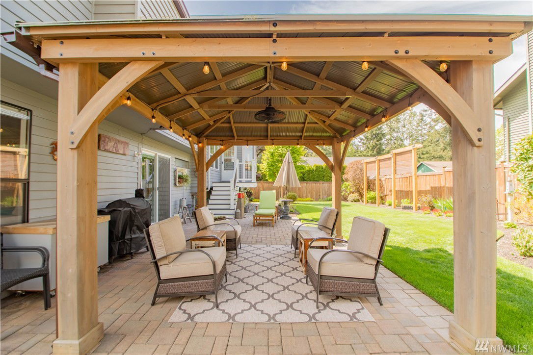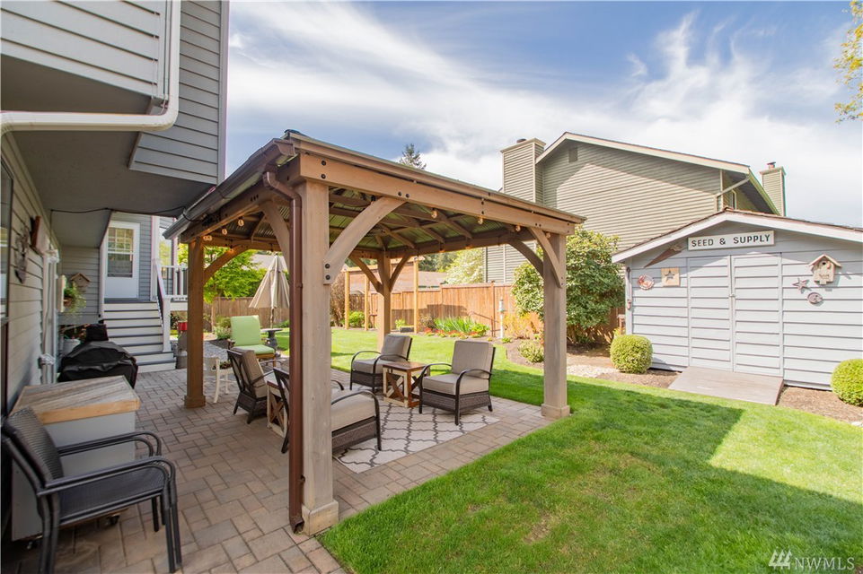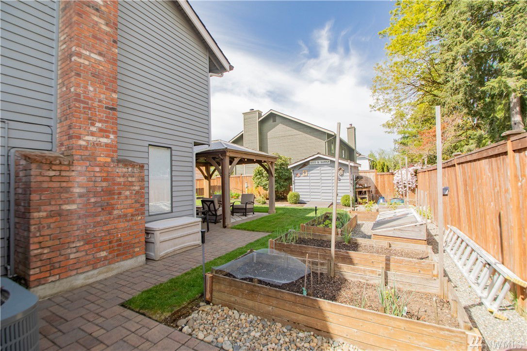 Welcome home to this gorgeous meticulous corner lot 4 bed, 2.5 bath home in Carriage Wood that is just a block from the access trail to Lake Youngs!Home features H/w entry, light & bright vaulted great room, D/R, spacious kitchen w/ S/S appliances, granite countertops, eating bar & massive garden window to look out & sitting area off of kitchen w/ French door to stairs to back patio.Master suite d/d entry w/ 5-piece bath compl w/ soaking tub, walk-in shower & closet.Slider leads to backyard oasis complete w/ patio w/ gazebo, raised garden beds, garden shed & privacy.Under stairs is your door that leads to your very own work-shop/storage area.Home has A/C, sprinkler system & wired for generator!Community park & sport courts too.Kent Schools!