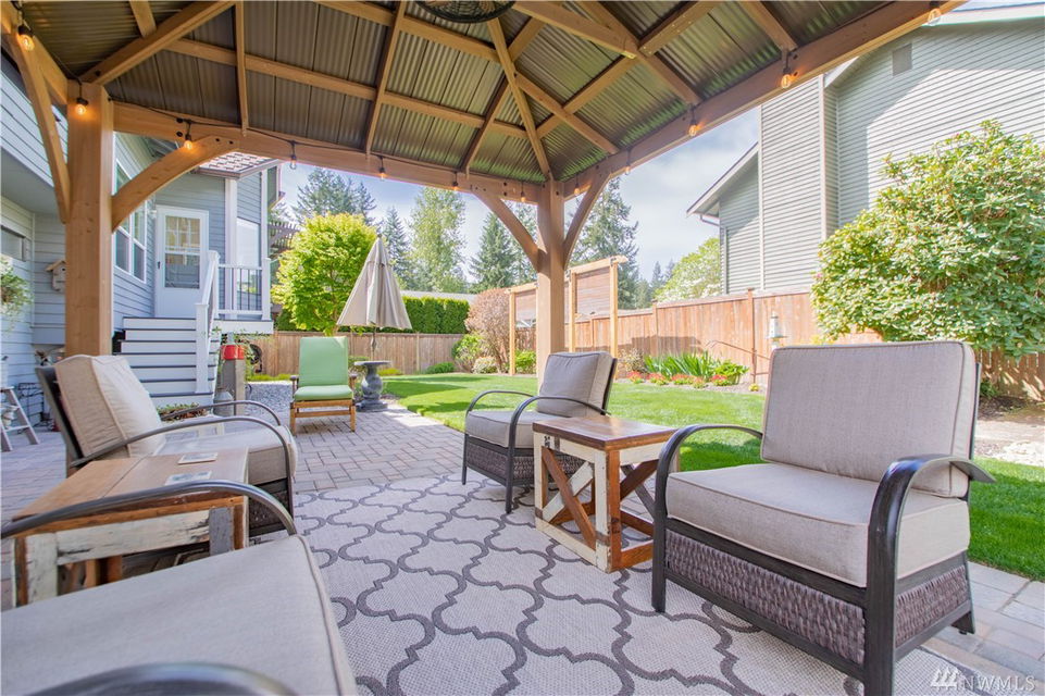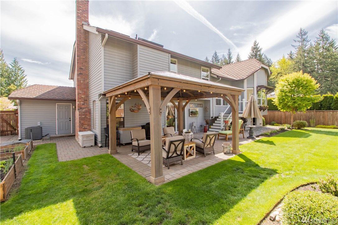 Welcome home to this gorgeous meticulous corner lot 4 bed, 2.5 bath home in Carriage Wood that is just a block from the access trail to Lake Youngs!Home features H/w entry, light & bright vaulted great room, D/R, spacious kitchen w/ S/S appliances, granite countertops, eating bar & massive garden window to look out & sitting area off of kitchen w/ French door to stairs to back patio.Master suite d/d entry w/ 5-piece bath compl w/ soaking tub, walk-in shower & closet.Slider leads to backyard oasis complete w/ patio w/ gazebo, raised garden beds, garden shed & privacy.Under stairs is your door that leads to your very own work-shop/storage area.Home has A/C, sprinkler system & wired for generator!Community park & sport courts too.Kent Schools!