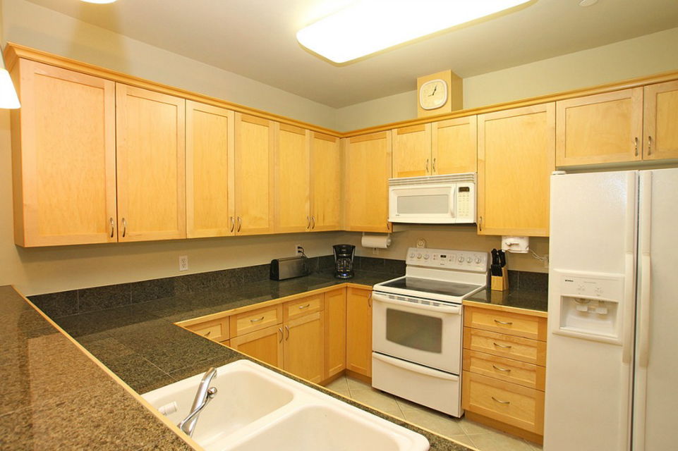 Luxury condo with 9ft ceilings, master suite with walk-in closet & 5-piece master bath. Second full bath & second bedroom. Spacious kitchen with maple cabinets & granite tile countertops. Large living and dining rooms. Fireplace! Both bedrooms and living room open to a private covered balcony for extended living. Secure, common garage with one parking spot next to elevator plus a private 1 car detached garage big enough to store a boat. Full size washer and dryer. All appliances included.