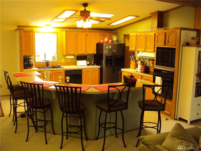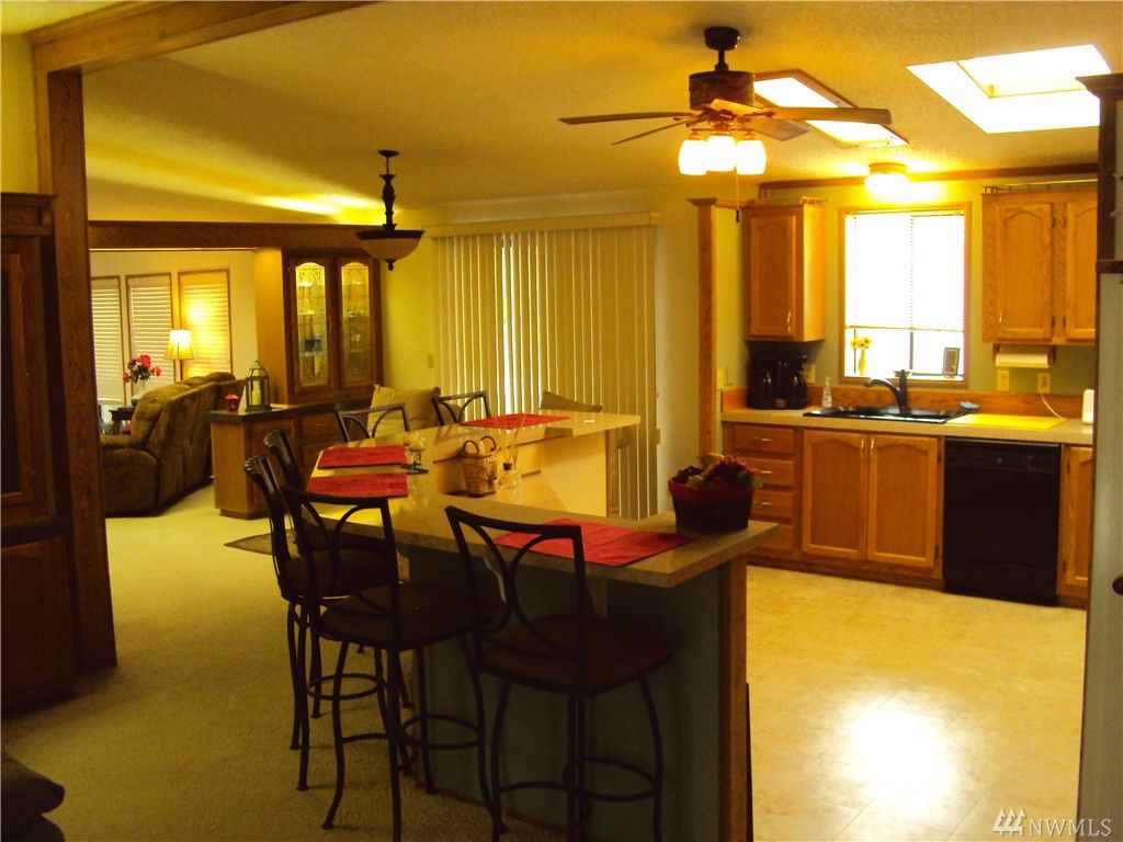 Something special!, 1991 Moduline Mfg. Hm., 1728 sq ft, 3 bedroom, 2 bath home with desirable custom features through out, located in Lake Stevens premiere 55+ park. This well maintained home has a detached 2 car garage with work bench. Home has open floor plan with wrap around sitting bar in Kit., Oak cabinets, 4 skylights, heat pump, large master bedroom, walk-in closet, jetted tub. Large covered decks great for entertaining. Reasonable Lot Rent!