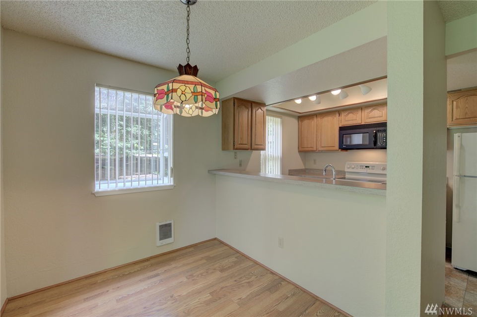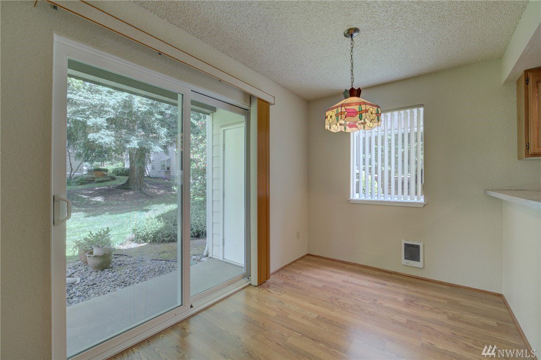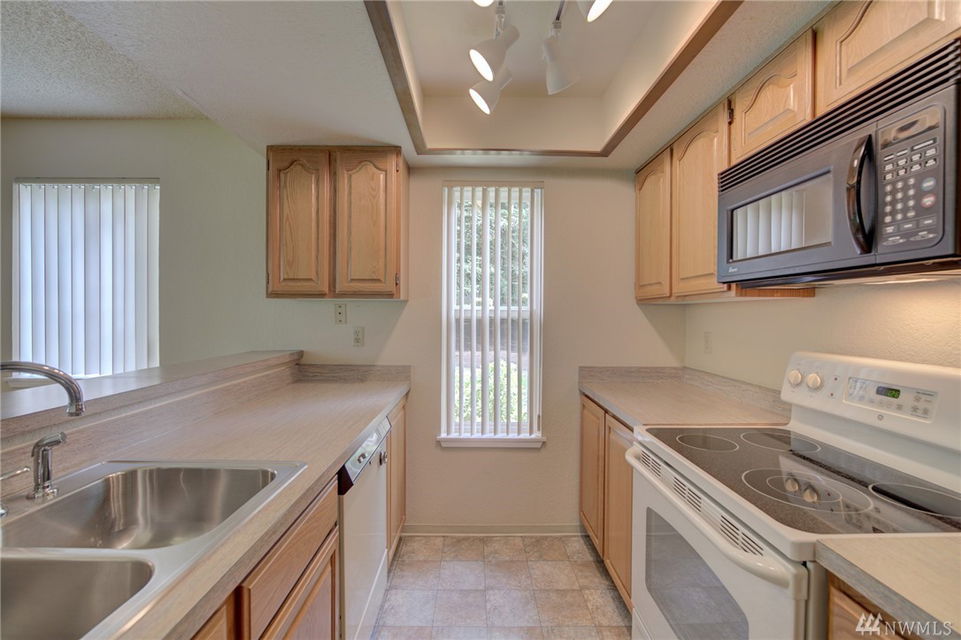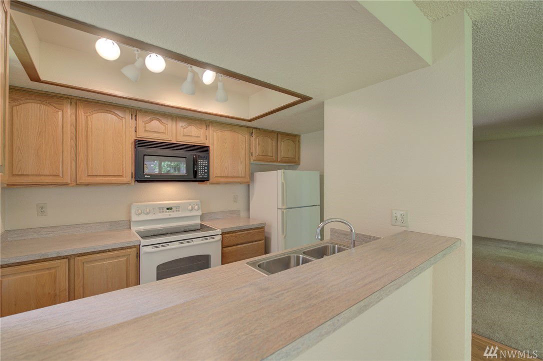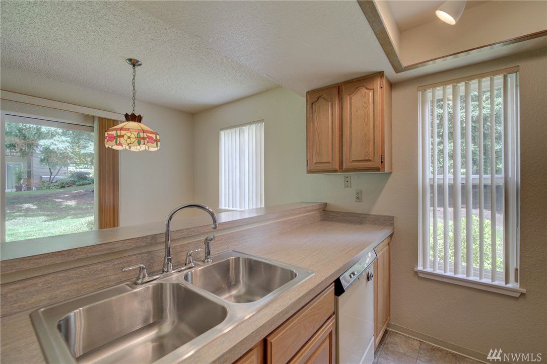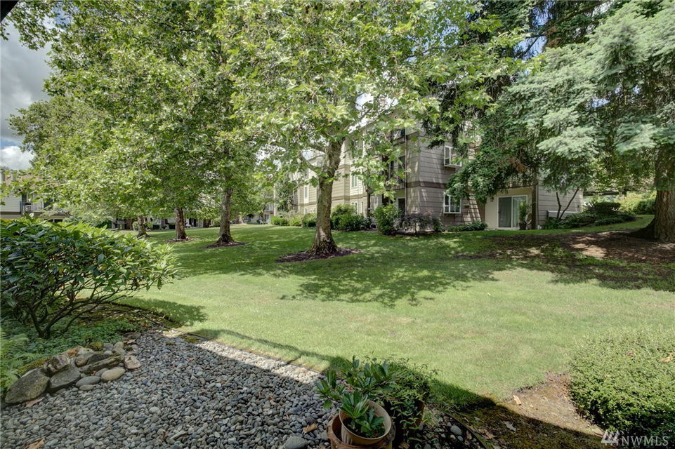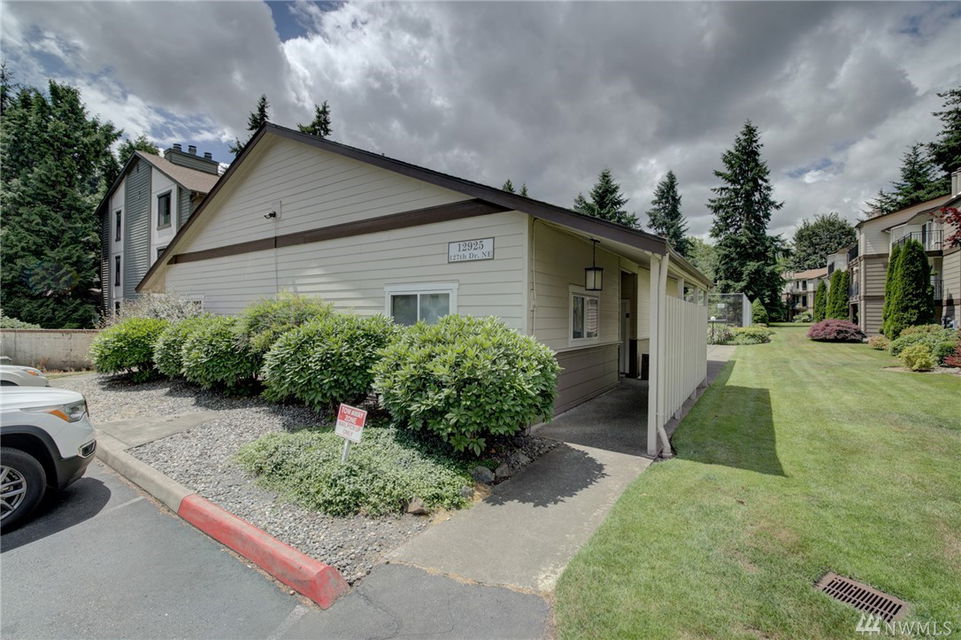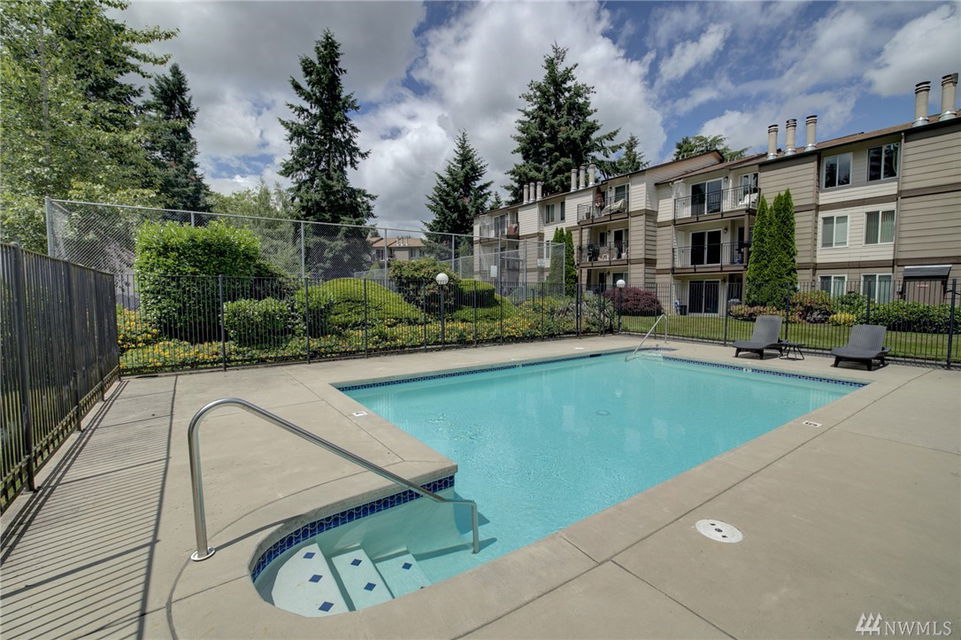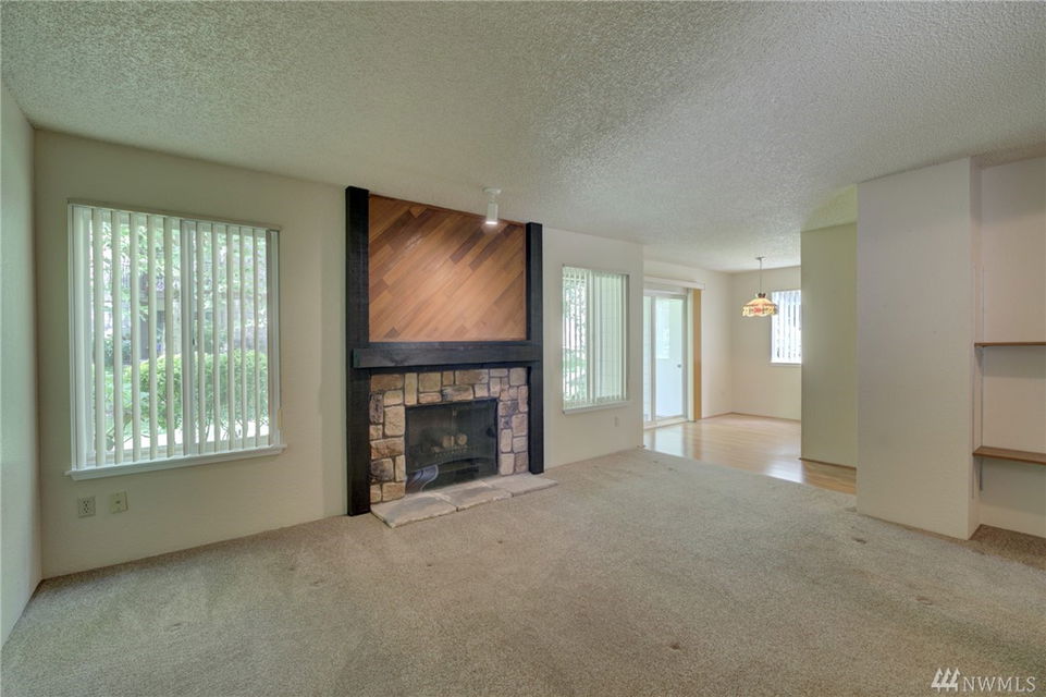 Clean & move-in ready! Great value! Ground floor Corner Unit in Kirkland. 2 bedroom, 2 bath, large laundry. Spacious master with full bath & double closet. Enjoy the cozy wood burning fireplace in the living room. Light & bright remodeled kitchen.Vinyl windows. Patio overlooking community grass & greenbelt. 1 covered parking directly in front & plenty of guest parking. Excellent amenities including clubhouse, pool, & tennis court. Easy access to new Totem Lake Village, Evergreen Hospital & 405.